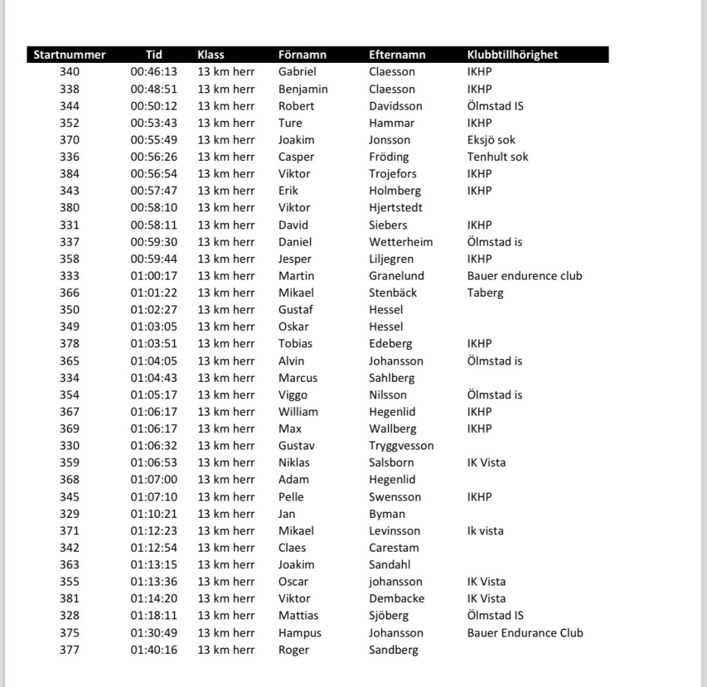 Stort tack alla som kom och sprang och hejade! Här kommer resultat från 5 och 13 km-loppen. Mer bilder är att vänta på våra sociala medier. Följ Ölmstad IS Skidor på facebook och Instagram.